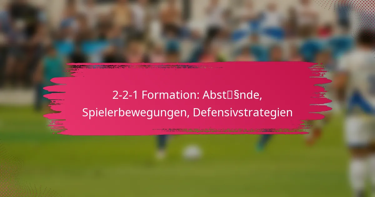Die 2-2-1-Formation ist ein vielseitiges taktisches Setup, das in verschiedenen Sportarten verwendet wird und aus zwei Spielern vorne, zwei im Mittelfeld und einem hinten besteht. Diese Anordnung fördert ein Gleichgewicht zwischen offensivem Druck und defensiver Stabilität, wodurch die Teams ihre Strategien während des Spiels effektiv anpassen können. Eine angemessene Raumaufteilung und die Bewegungen der Spieler innerhalb dieser Formation sind entscheidend, um die defensive Integrität aufrechtzuerhalten und ein kohärentes Teamwork zu gewährleisten.