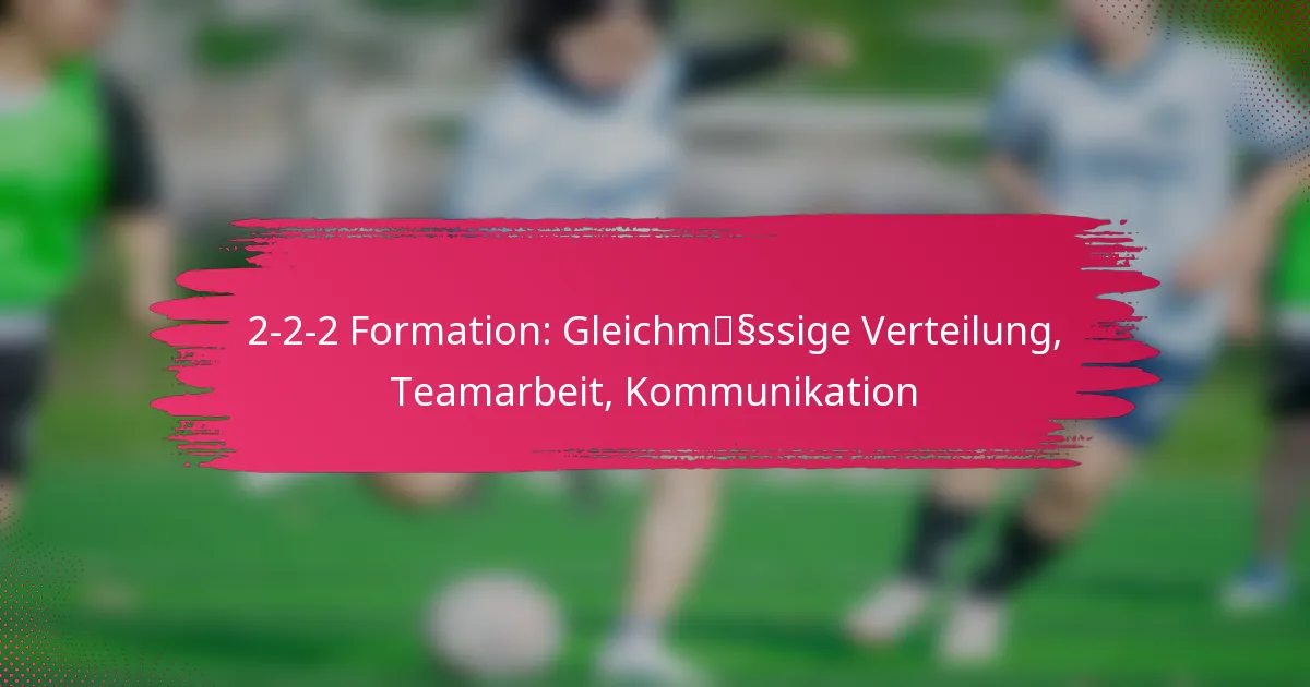 Die 2-2-2-Formation ist ein strategisches Layout, das im Mannschaftssport verwendet wird und zwei Spieler in jeder von drei Linien umfasst, was eine gleichmäßige Verteilung der Spieler auf dem Feld fördert. Diese Anordnung verbessert die Teamarbeit und Kommunikation, sodass die Teammitglieder effektiv zusammenarbeiten und Verantwortung teilen können. Durch die Förderung eines kohärenten Ansatzes führt die 2-2-2-Formation zu einer verbesserten Anpassungsfähigkeit und stärkeren Beziehungen innerhalb des Teams.